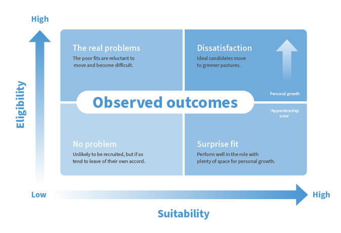 Those who lacked hard skills but possessed the right behaviours tended to fit best with the job. Unlike the 'ideal fits', they saw new challenges and opportunities for development.