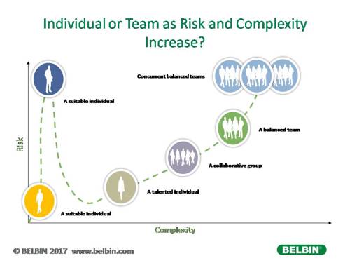 Meredith Belbin, the Father of modern Team Role theory and creator of the famous Belbin Model, asserts that as complexity and risk increase, individuals and groups lack the agility, versatility and balanced diversity to adapt.